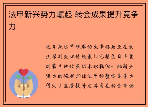 近年来,法甲联赛的竞争格局正在发生深刻变化。传统豪门巴黎圣日耳曼的霸主地位虽仍未动摇,但一批新兴势力的崛起却让法甲的整体竞争力得到了显著提升。尤其是在转会市场上,诸如摩纳哥、里昂和马赛等俱乐部的引援操...